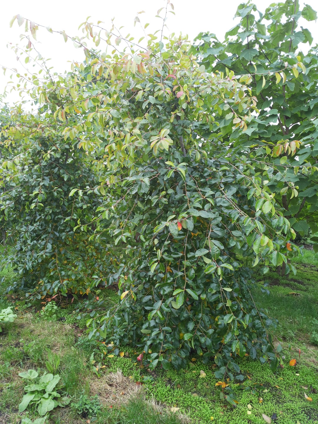 Nice weeping shape of black tupelo whose branches arch gracefully even when young. The glossy dark green leaves are obovate to oval. At 7 to 15 cm they are significantly larger than the species. In autumn they turn deep yellow and orange to scarlet over a period of weeks. The autumn colour partly depends on the soil type in which the tree stands. The root growth is deep making transplantation difficult. N. sylvatica grows naturally in marshy sites but this tree can also thrive well in less moist places.