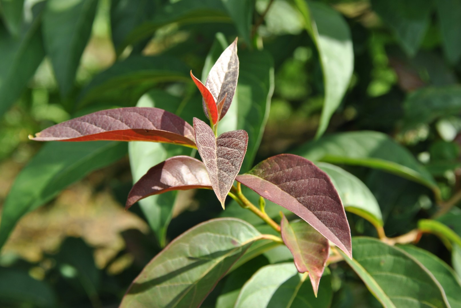 The leaves of Nyssa sylvatica 'Red Red Wine' turn red in autumn.