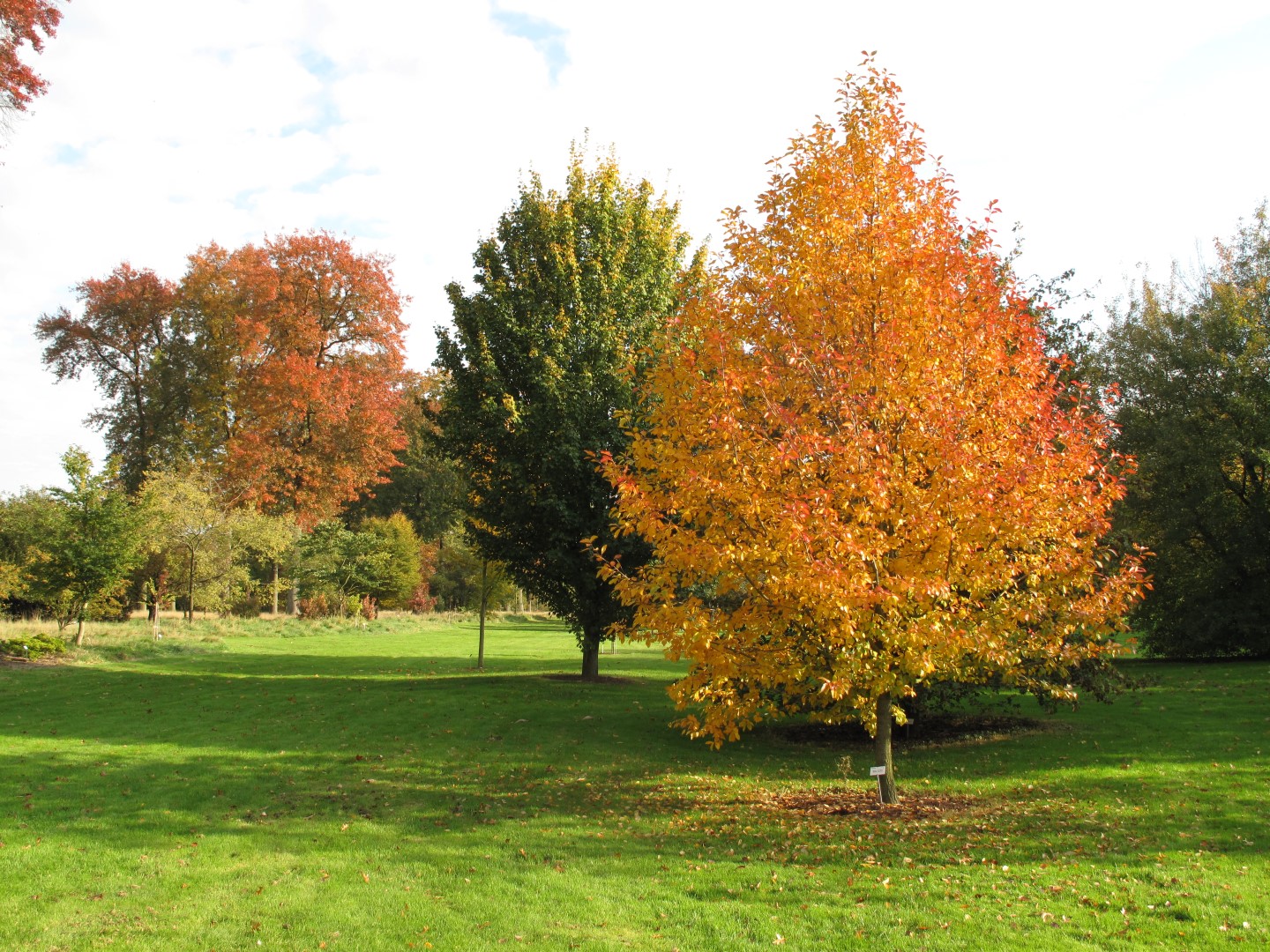 Medium-size tree with a broad ovoid crown 10 to 15 m tall. When mature the branches arch strongly so that the crown becomes broader and almost round. ‘Wisley Bonfire’ has a strikingly regular crown shape. The glossy dark green leaves are oval to obovate and a fraction larger than the species. The leaves are glossy dark green in summer, turning yellow, orange and radiant red over several weeks in autumn. The autumn colours may vary depending on the soil type in which the tree stands. The root growth is deep making transplantation difficult. N. sylvatica grows naturally in marshy sites but it can also thrive well in less moist places.
