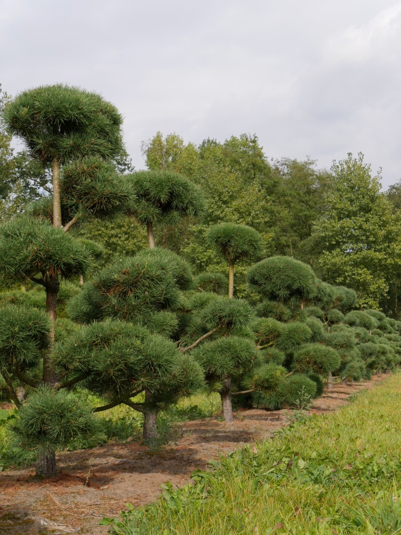 This selection created in Norway differs from the species by the significantly slower growth and denser, conical crown. Despite the slower growth, this tree will be able to reach an eventual height of 12 m. The twigs are strikingly orange-brown. The mature bark is grey-brown and peels off in rough strips. The stiff, rather short needles have a slight twist and are 4 to 6 cm long. They are in twos and grey-green. The grey-brown cones hang alone or in clusters of 2 to 5. This Pinus even grows in extreme conditions although it prefers well-drained, lightly acidic, quite dry soils. Very resistant to (sea) wind and not sensitive to air pollution. Its compact, conical crown shape makes ‘Norska’ suitable for gardens.