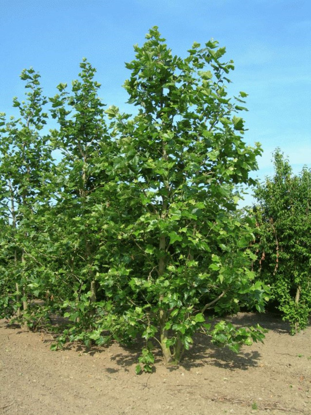 An American cultivar very resistant to plane canker. It is a fast-growing tree with a long straight trunk and a rounded crown. Height 20 - 25 m. A characteristic feature is the bark that flakes off. The underground is olive green and the flakes that fall off are grey-green, dark green or brown. The broad leaf has 3 - 5 sharply serrated lobes and turns colour to brownish yellow in the autumn. Fallen leaves do not rot easily and remain for a long time on the ground around the tree. Plane trees are very resistant to hard surfaces but surface roots can push the surrounding paving upwards. Takes pruning very well, even in old wood. Saplings require a tree stake for support. Winter Winter hardiness zone: 6a