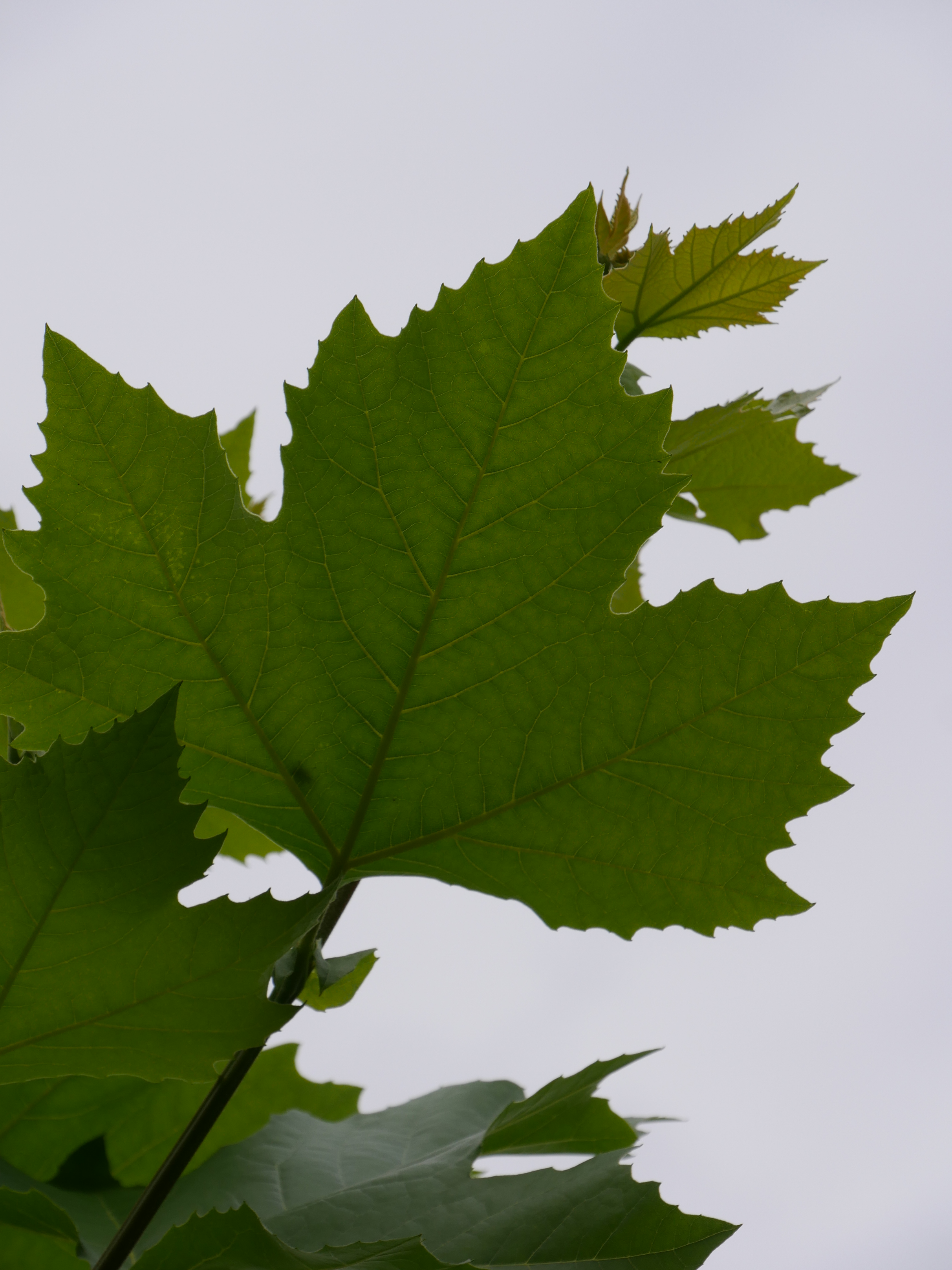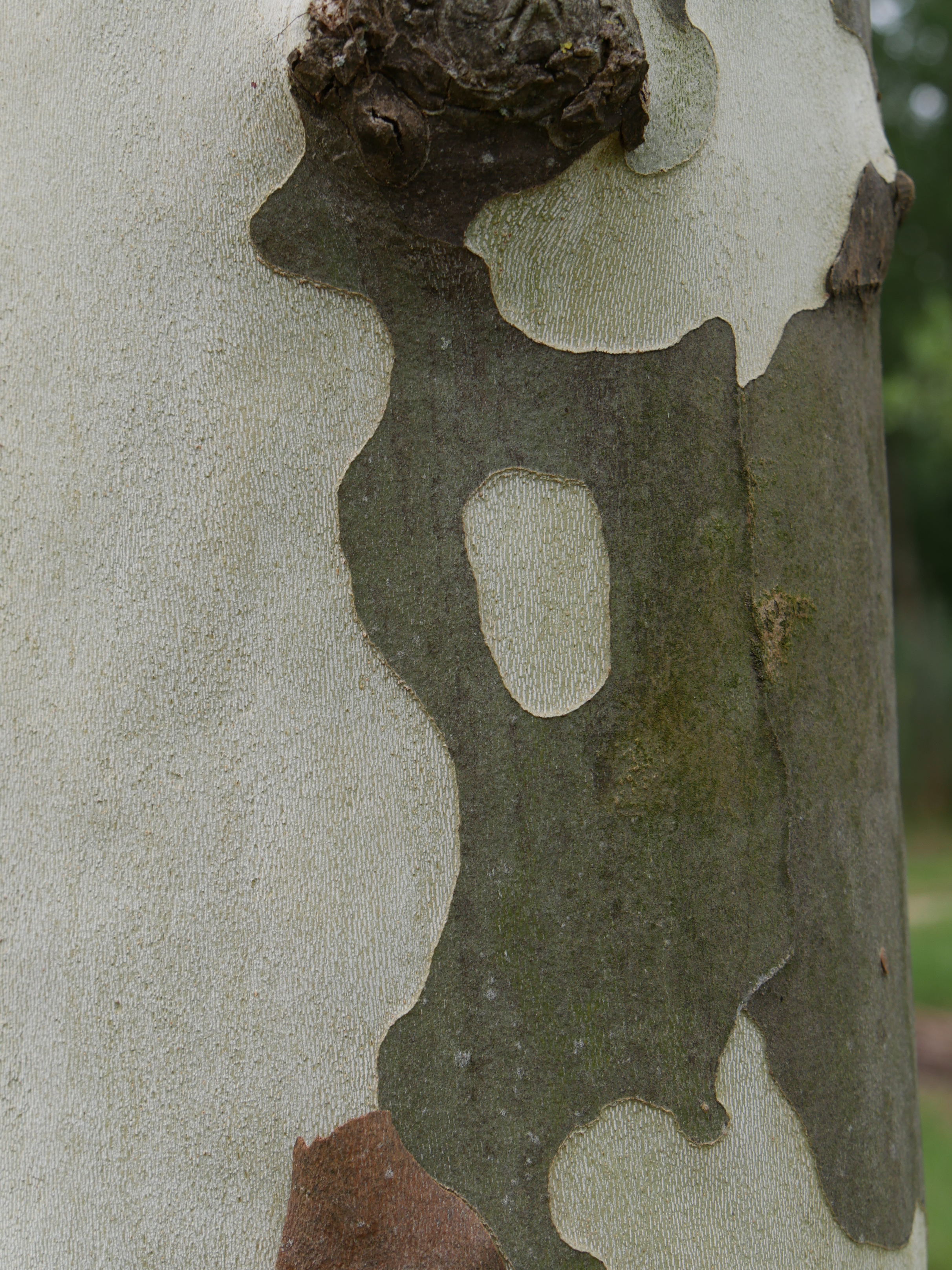In Europe the oriental plane grows into a large tree with a wide oval crown. When the tree is older the branches hang down more, thereby forming a rounded crown. The bast is yellow, and the green (sometimes grey) bark flakes off in small pieces, giving the tree a speckled appearance. A clear difference with P. x acerifolia can be seen in the very gnarled trunk and the shape of the leaves. The palmate leaves are more deeply incised and usually have 5-7 sharply serrated lobes, the central lobe being longer than it is broad. The spherical flowers are covered with protruding hairs. The fruit is at first green but turns colour to brown and has a diameter of about 2.5 cm. The fruit hangs in groups of 3 to 6 and remains on the tree until deep into the winter. Saplings are sensitive to frost.