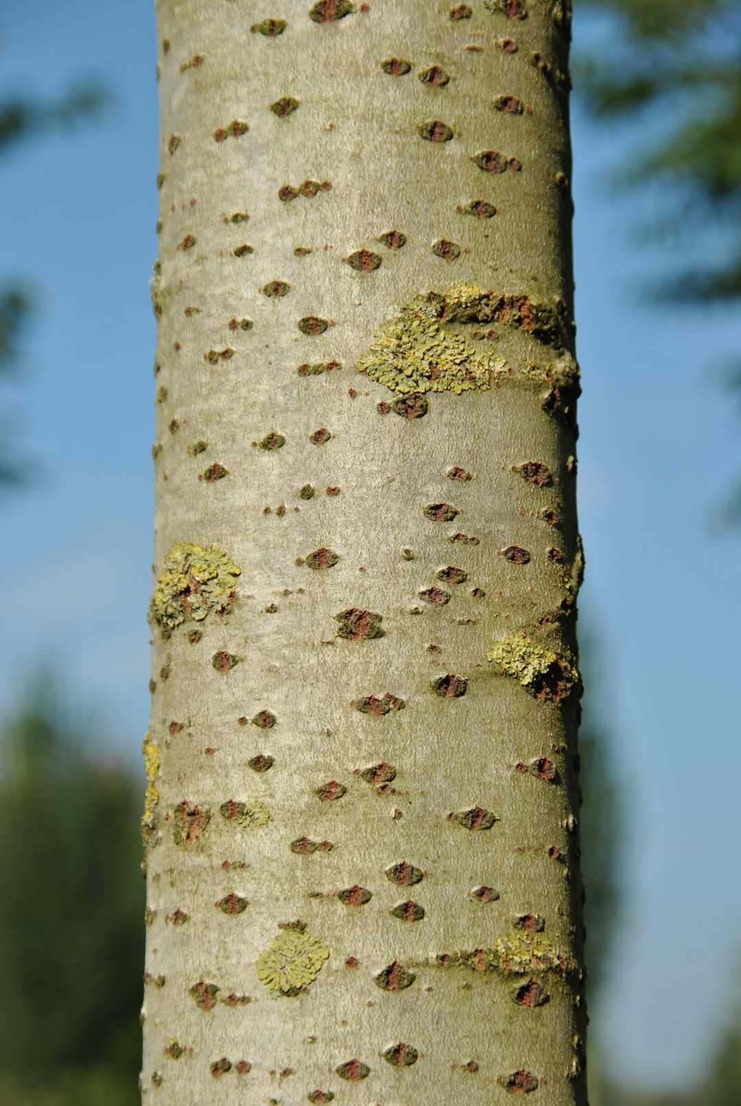 Young specimens have a straight trunk with regular dense branching. Later the crown grows pyramidal. Height approx. 20 - 25 m. The tree has grey bark that is rough at the foot. The dark green leaves are triangular to ovoid and have a grey underside. Approx. 5 - 12 cm long and 4 - 9 cm wide. The leaf edge is lobed or roughly serrated. In the autumn the leaves turn yellowish-green. Bears flowers in the form of male catkins. Little sensitive to rust but very sensitive to canker. Can be used for landscapes and row planting. Also does justice as a solitary in public gardens and parks. 'De Moffart' prefers moist nutritious soils but also grows in drier less nutritious soil. Stands up well to strong winds.