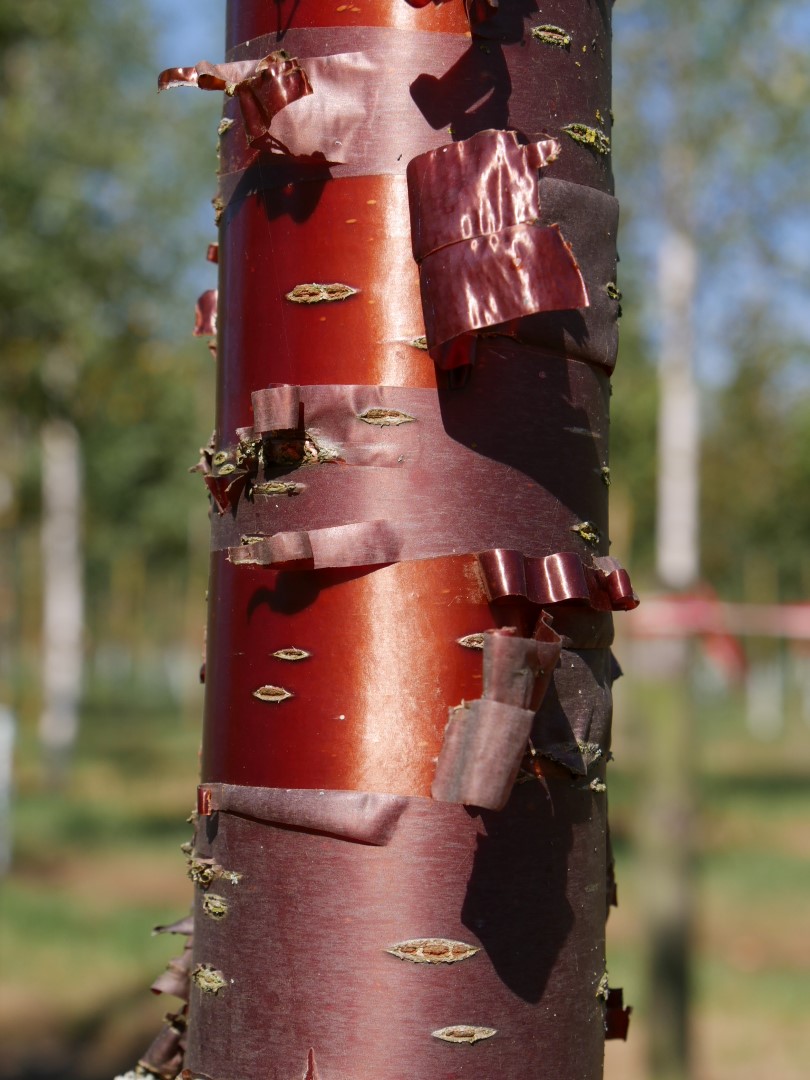 Prunus serrula 'Branklyn' can eventually reach a height of 6-8 m, depending on the site and climate conditions.