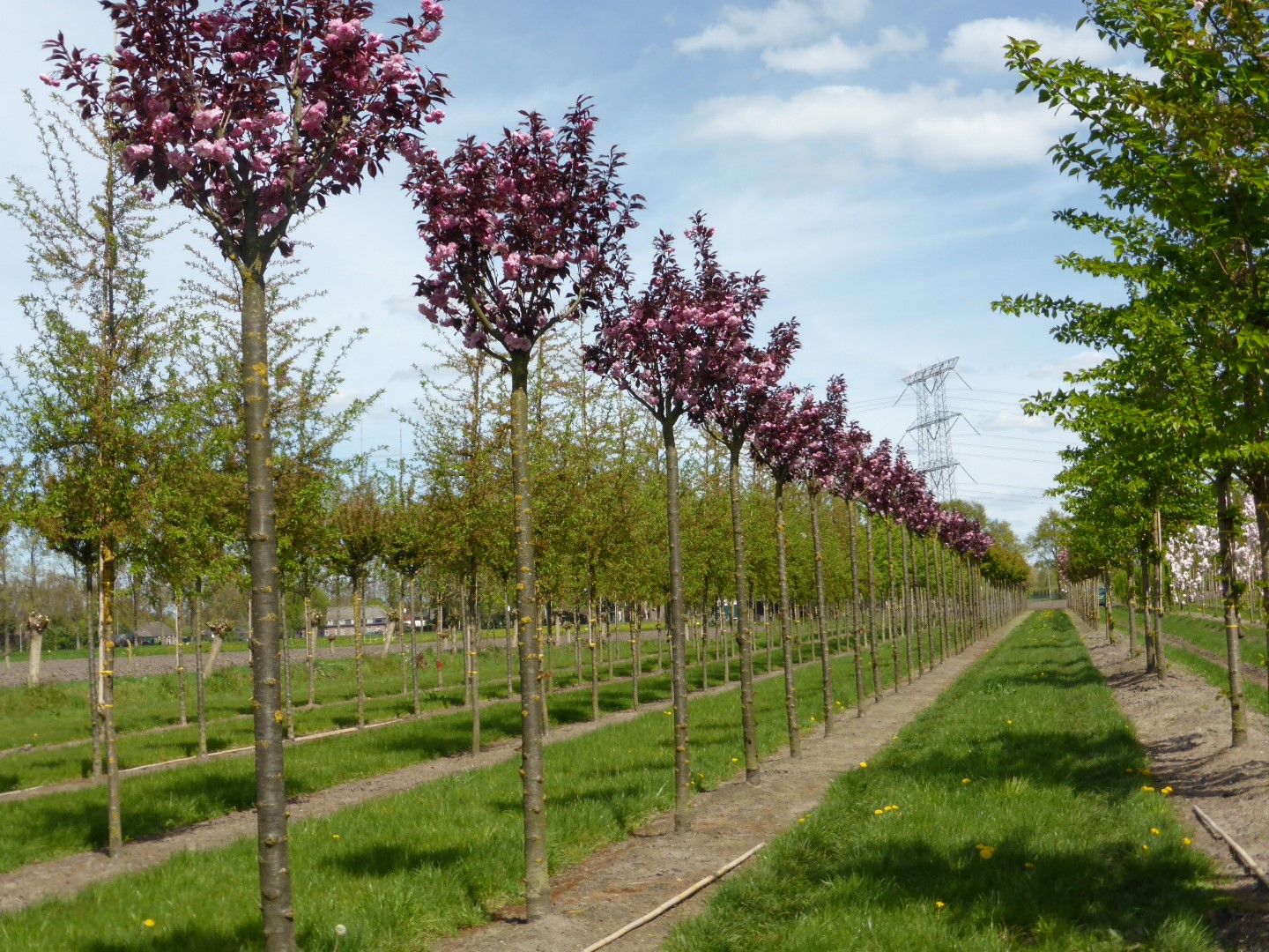 Prunus 'Royal Burgundy' grows into a sturdy tree with a broad vase-shaped crown. Height 6 - 8 m. 'Royal Burgundy' occurred as a sport (mutation) in P. serrulata 'Kanzan'. A remarkable difference with 'Kanzan' is that the leaves of 'Royal Burgundy' are purple-red. In the autumn they turn to reddish orange. The flowers are also somewhat darker purplish-pink than those of 'Kanzan'. The tree is planted in parks, avenues and green verges. Winter hardiness zone: 6