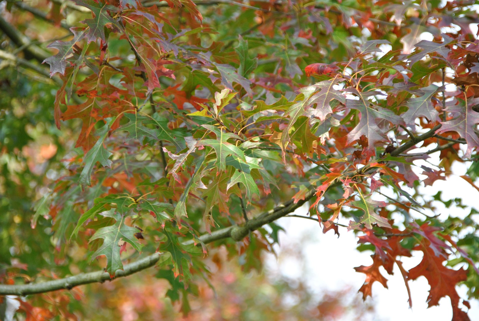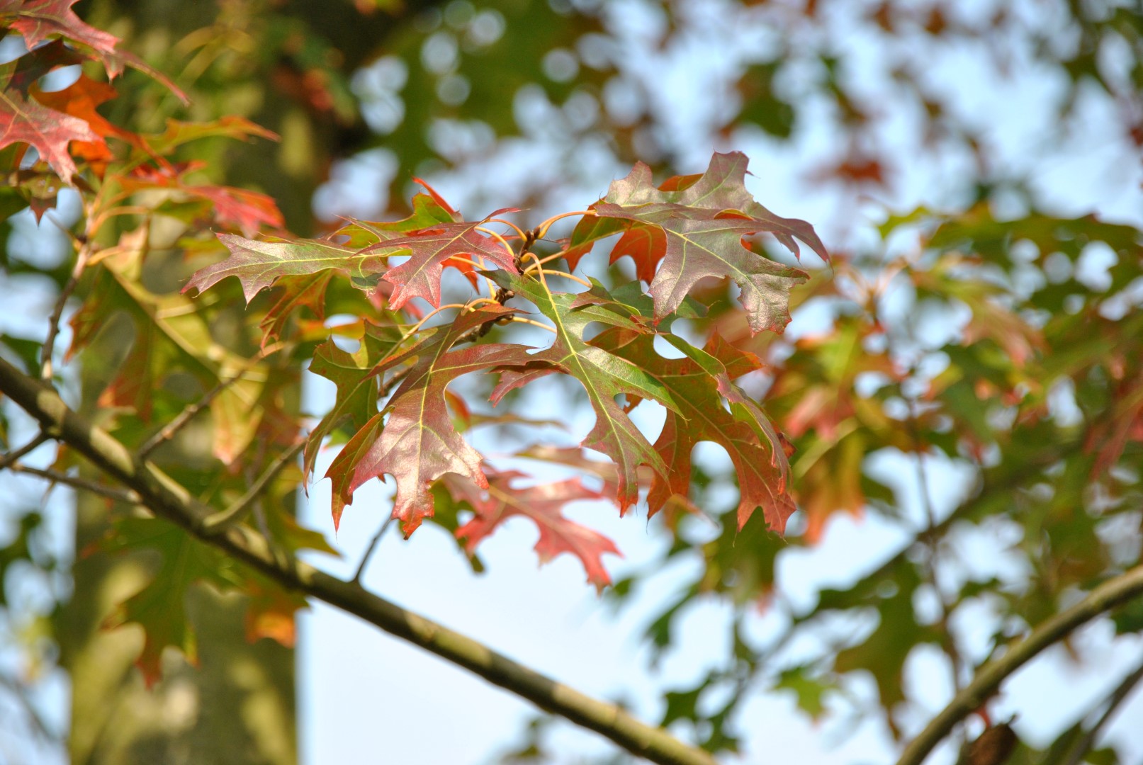 The leaves of Quercus ellipsoidalis turn red, purple in autumn.