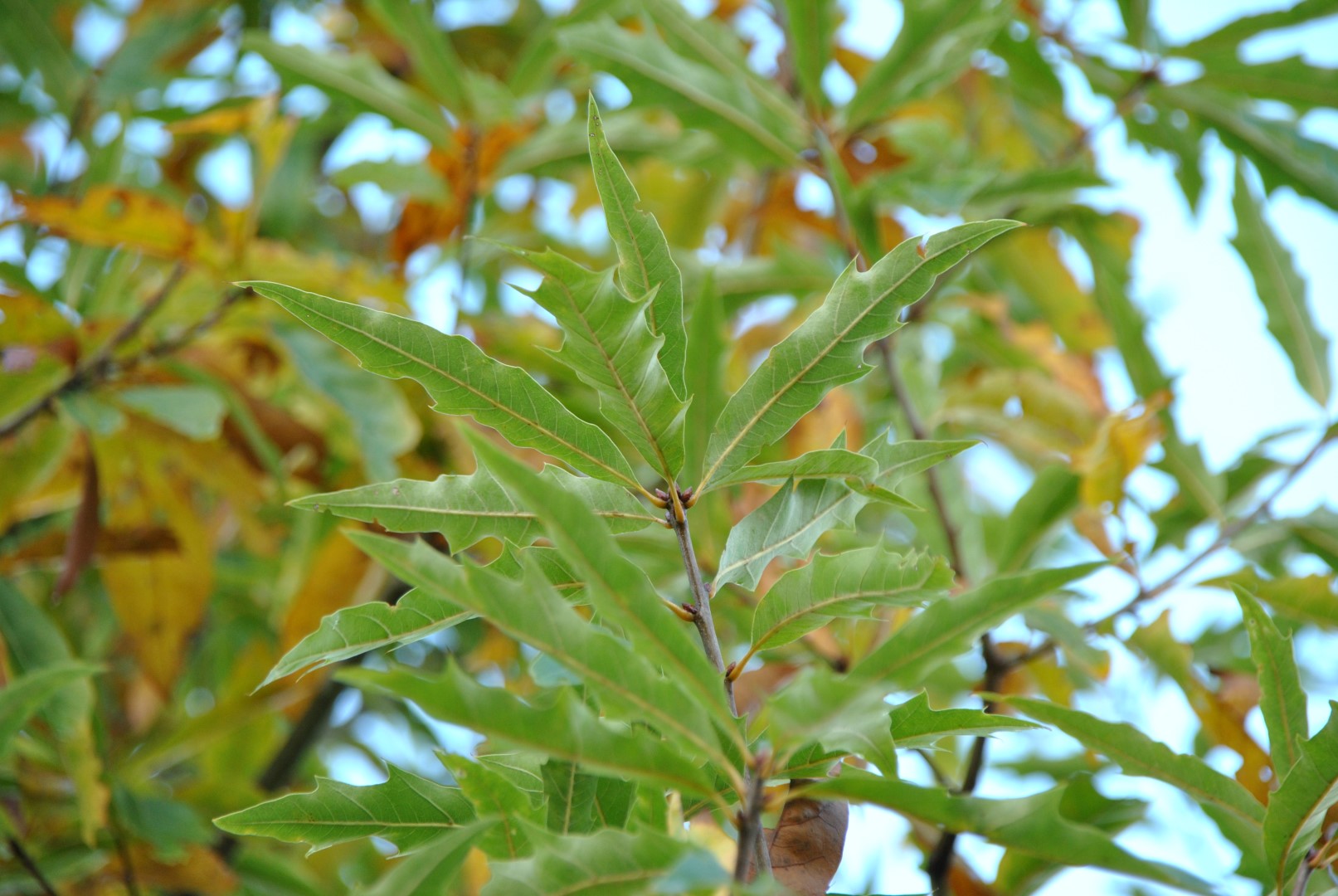The leaves of Quercus ×heterophylla turn red in autumn.