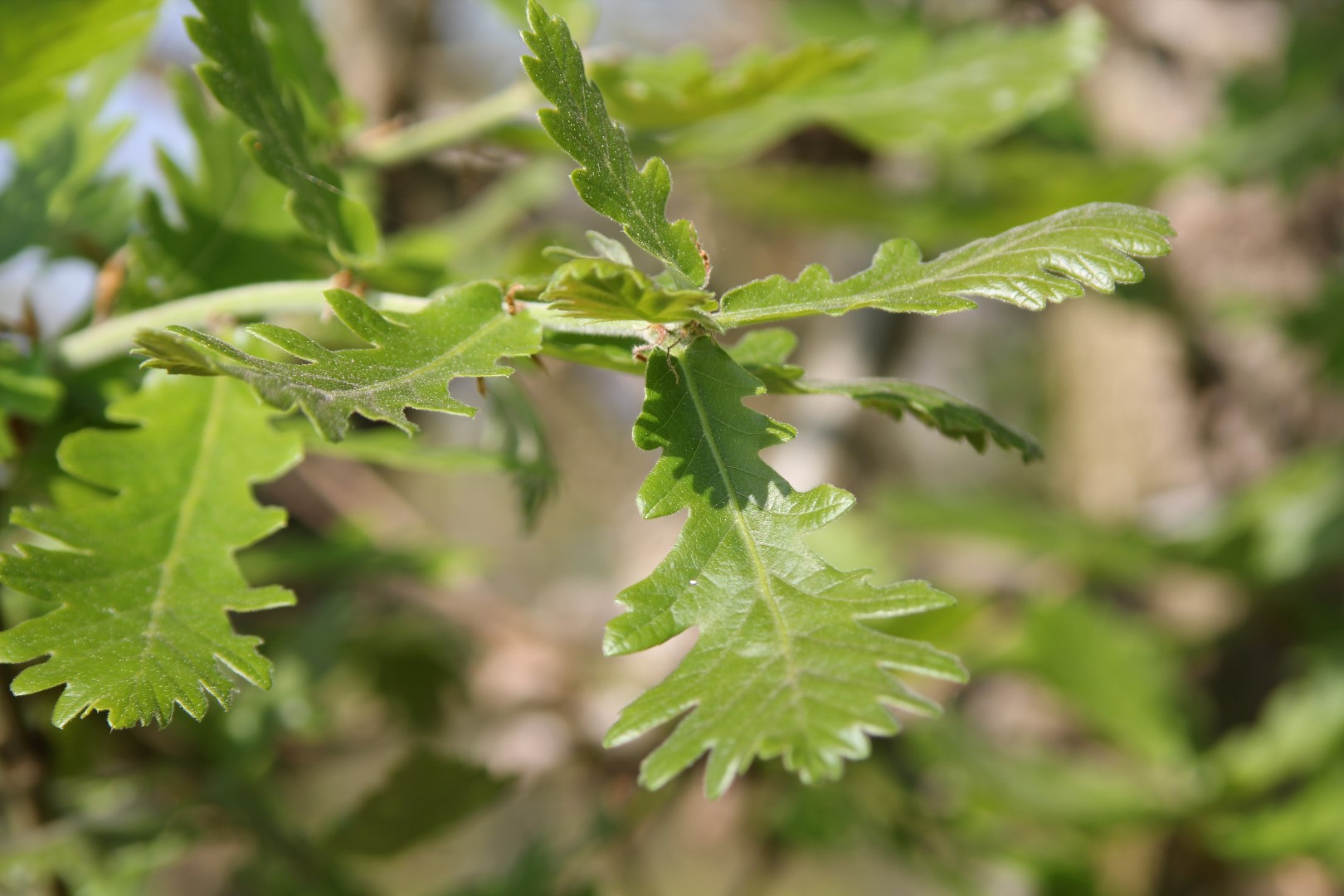 This cross between Q. macranthera and Q. frainetto was bred and grown in 1961 by Mr. Van Hooey of the Trompenburg Arboretum, Rotterdam. In its younger years it grew as a narrow spherical tree but later became more broadly spherical to almost ovoid. The leaves closely resemble those of Q. frainetto but are more obovate and remain a little smaller. The top of the leaf is somewhat more pointed. The dead leaves remain on the tree until deep into winter. The acorns are elongated, 3 - 4 cm long. The cupule is covered with contiguous scales. Despite being still young, the tree has already proved its worth as a park tree. Q. 'Macon' is also a very worthy avenue tree.