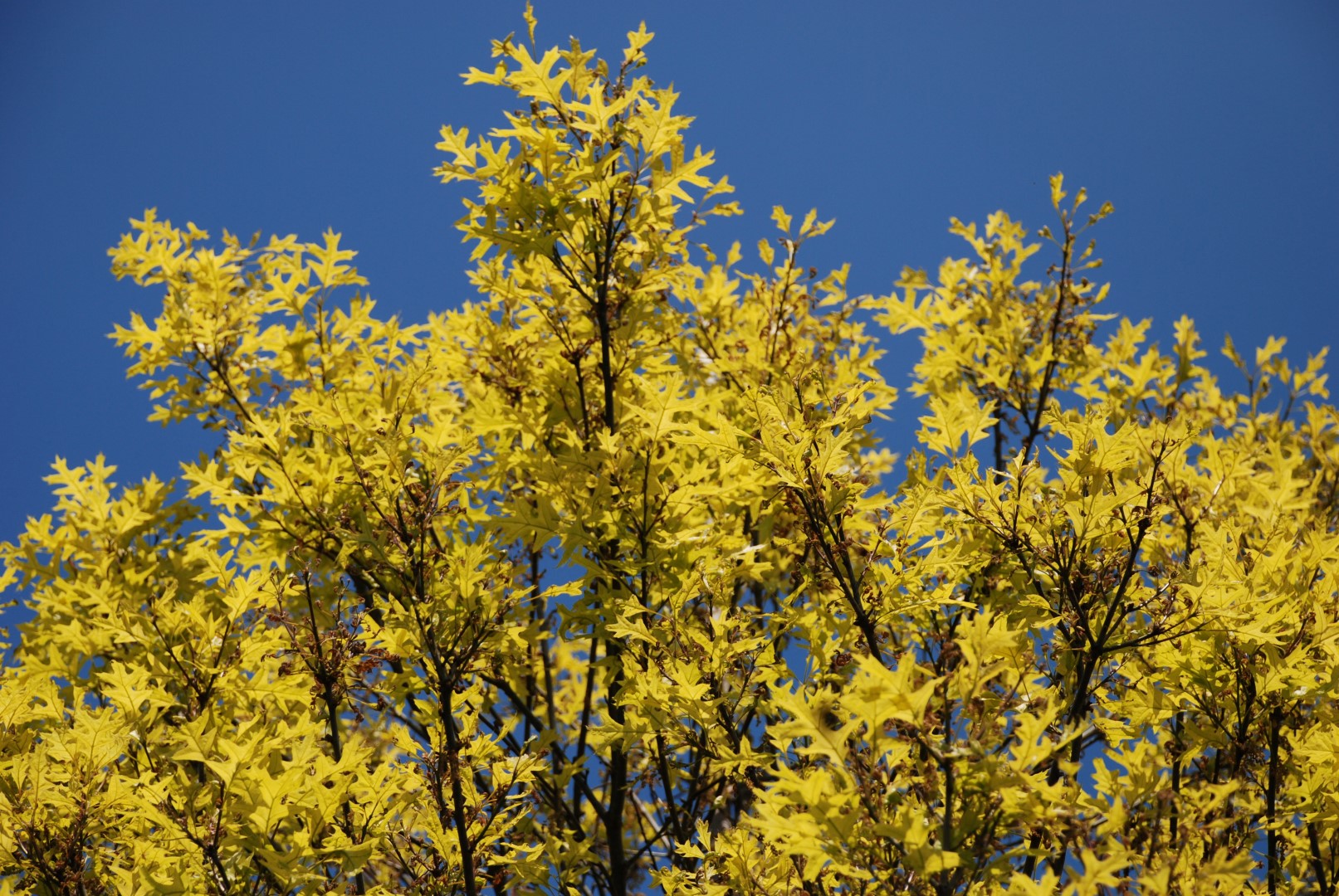 The leaves of Quercus palustris 'Compacta' turn red in autumn.