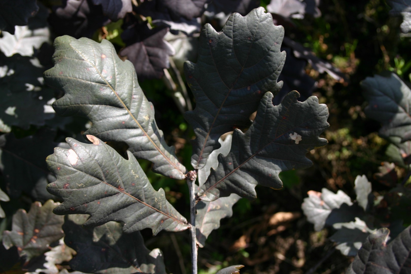 Red-leaved cultivar of Q. robur with a broad ovoid crown, eventually becoming round. Grows significantly better than the old purple-leaved cultivar, ‘Purpurascens’. The bark, blossom and fruit are the same as the species. The obovate leaves are, in terms of shape, also like the species although they are larger than on ‘Purpurascens’. On emerging the leaf is green but it gradually turns darker, and at the end of summer it turns through red to a glossy dark greenish purple. The tree was found by M. Timuki in 1939 but was only named and distributed in 1946. The good growth and lovely foliage colours are the most important features of this purple-leaved oak. In addition, ‘Timuki’ is significantly less susceptible to mildew.
