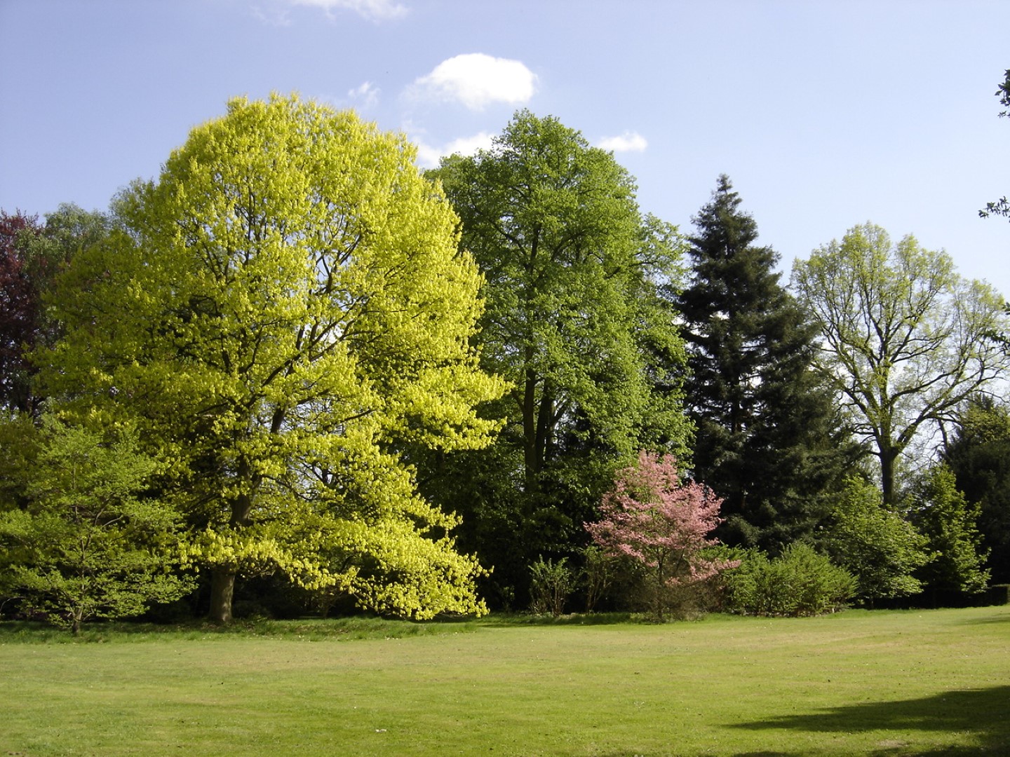 Yellow-leaved cultivar with a maximum height of 15 m, clearly shorter than the species. The crown starts off broad oval and is later round with horizontal main branches. In the crown the trunk can fork strongly: the grey bark remains smooth for a long time. The young twigs are bare and glossy reddish-brown. In the spring the leaves emerge a remarkable golden-yellow and turn greenish-yellow in the summer. The leaves are oval to obovate. The leaf edge has irregular and sharply serrated lobes, sometimes halfway incised (pinnate split). The leaves are 12 - 22 cm long, on young twigs up to 25 cm, and 10 - 15 cm wide. Depending on the amount of sun and the temperature the tree turns orange-red to scarlet in the autumn. The cylindrical flattened acorns are enclosed to a maximum of a quarter by the cupule.
