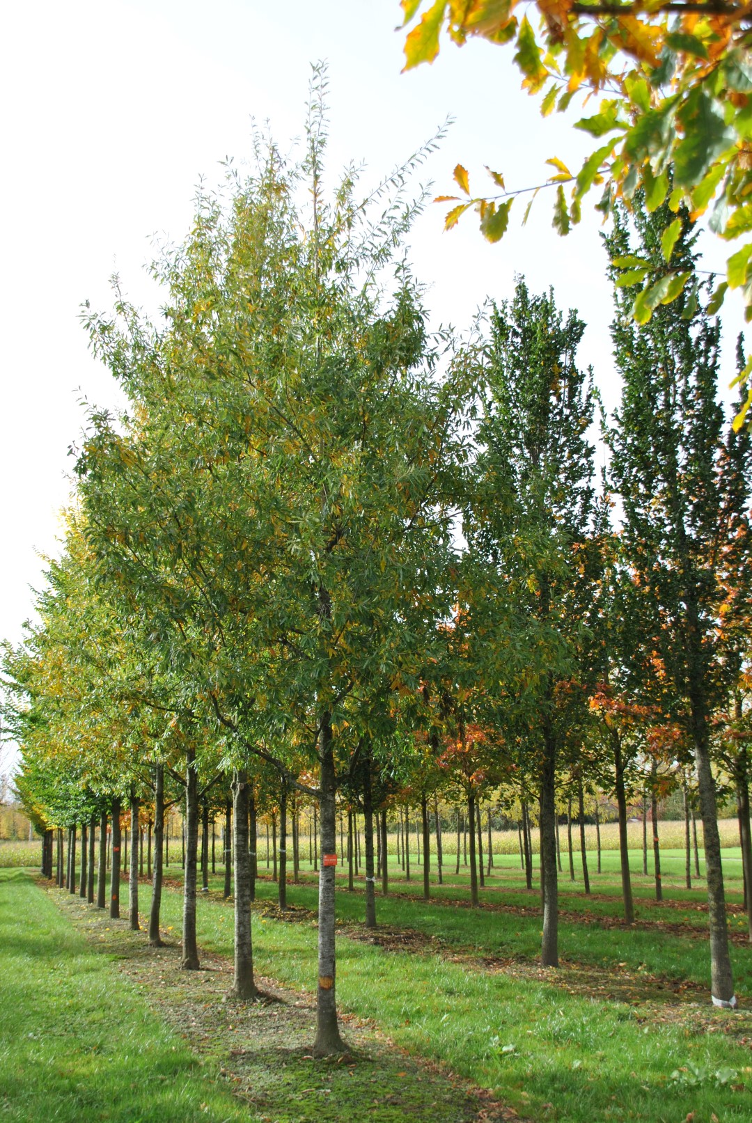 The leaves of Quercus ×schochiana turn yellow, orange, red in autumn.
