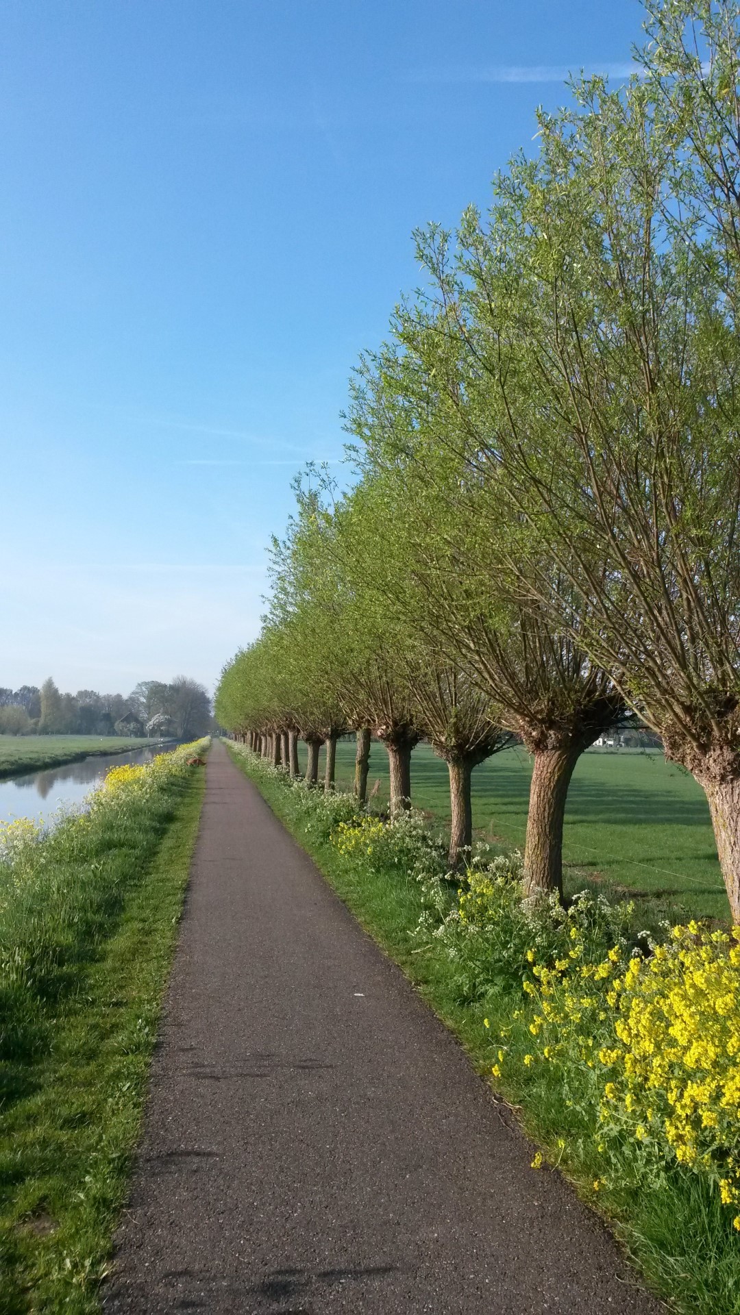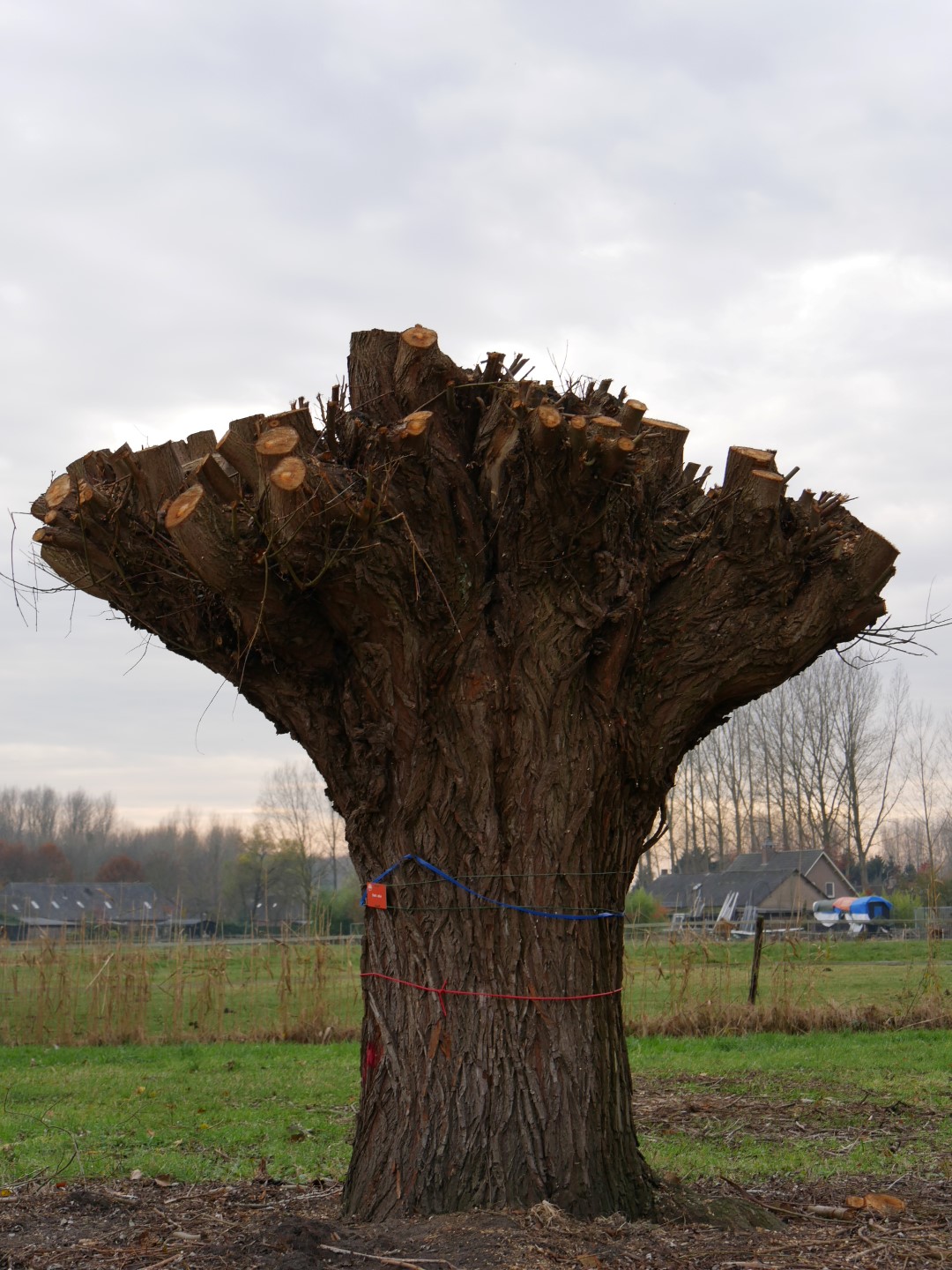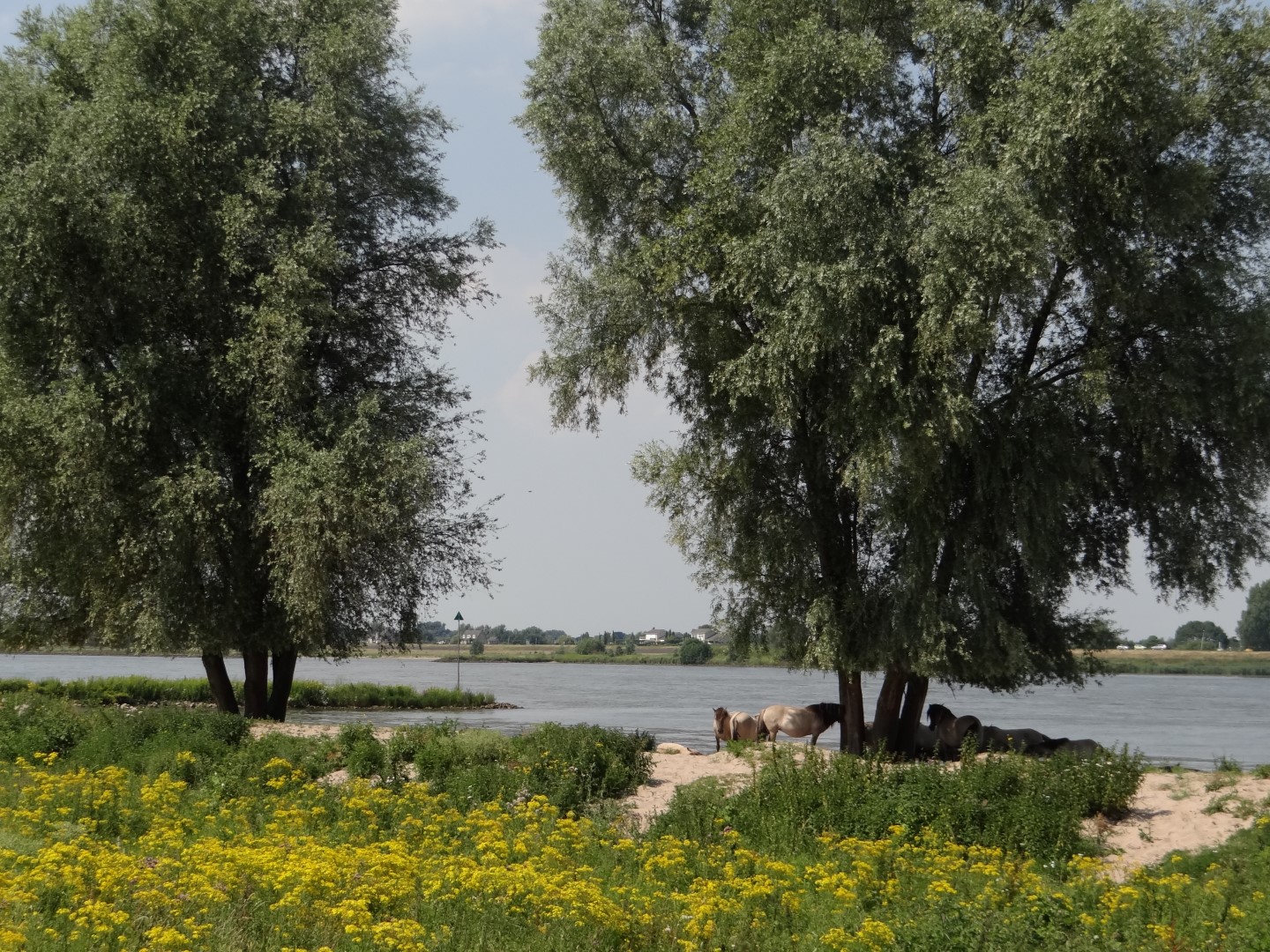 A decorative, fast-growing willow with an oval crown. Becomes broader with pendulous branches at a later age. Often used in landscaping as a pollard willow and then remains significantly lower. The yellowish brown to grey trunk has grooves and is somewhat corky. Young twigs are yellowish brown and very bendable: they are often used for wickerwork and basketwork. The lanceolate leaves are dark green and slightly shiny on top. Underneath they are bluish green. Both sides are slightly hairy with small, silvery hairs. The yellow catkins appear at the same time as the leaves. Roots grow close to the surface, with very many root-hairs. Salix alba is an important supplier of timber for plywood, toys, wooden shoes and crates and has a wide variety of cultivars. It grows in moist places and can stand temporary submersion, but also thrives in dryer places.