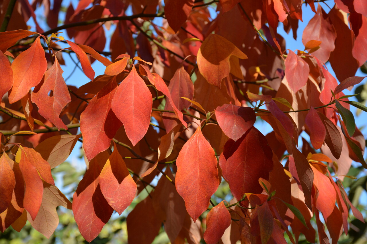 The leaves of Sassafras albidum turn yellow, orange in autumn.