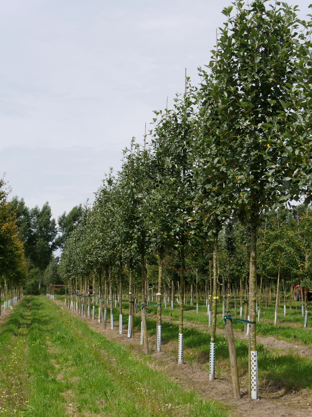 A tree with a dense spherical crown that later becomes broad ovoid. Reaches a height of between 8 and 12 m. This cultivar has remarkable leaves that are silver-white on both sides, usually somewhat yellower on the upper side. This means that the leaves are a light grey colour in the spring and early summer. Later in the season the upper side of the leaves turns green and thus becomes identical to those of the species. 'Lutescens' sheds its leaves early in the autumn. In contrast to other cultivars of S. aria, 'Lutescens' does not stand up to hard surfaces. Winter hardiness zone: 5a