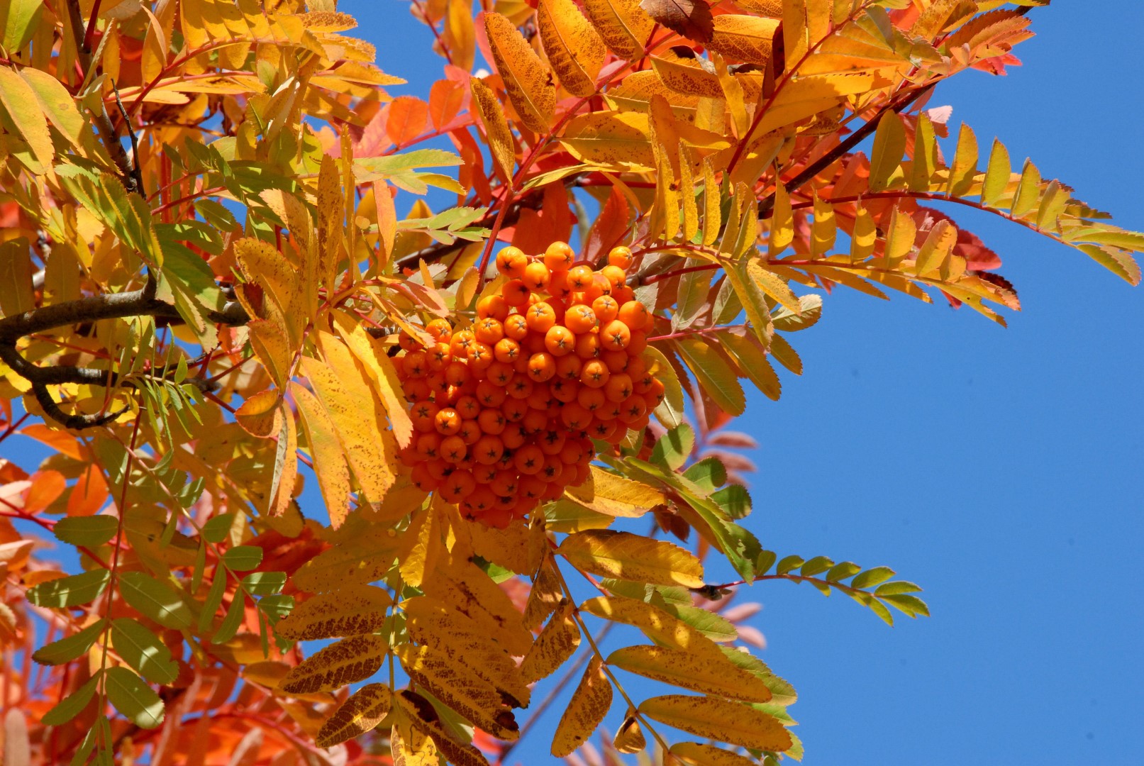 The leaves of Sorbus ×arnoldiana 'Golden Wonder' turn yellow, orange, red in autumn.