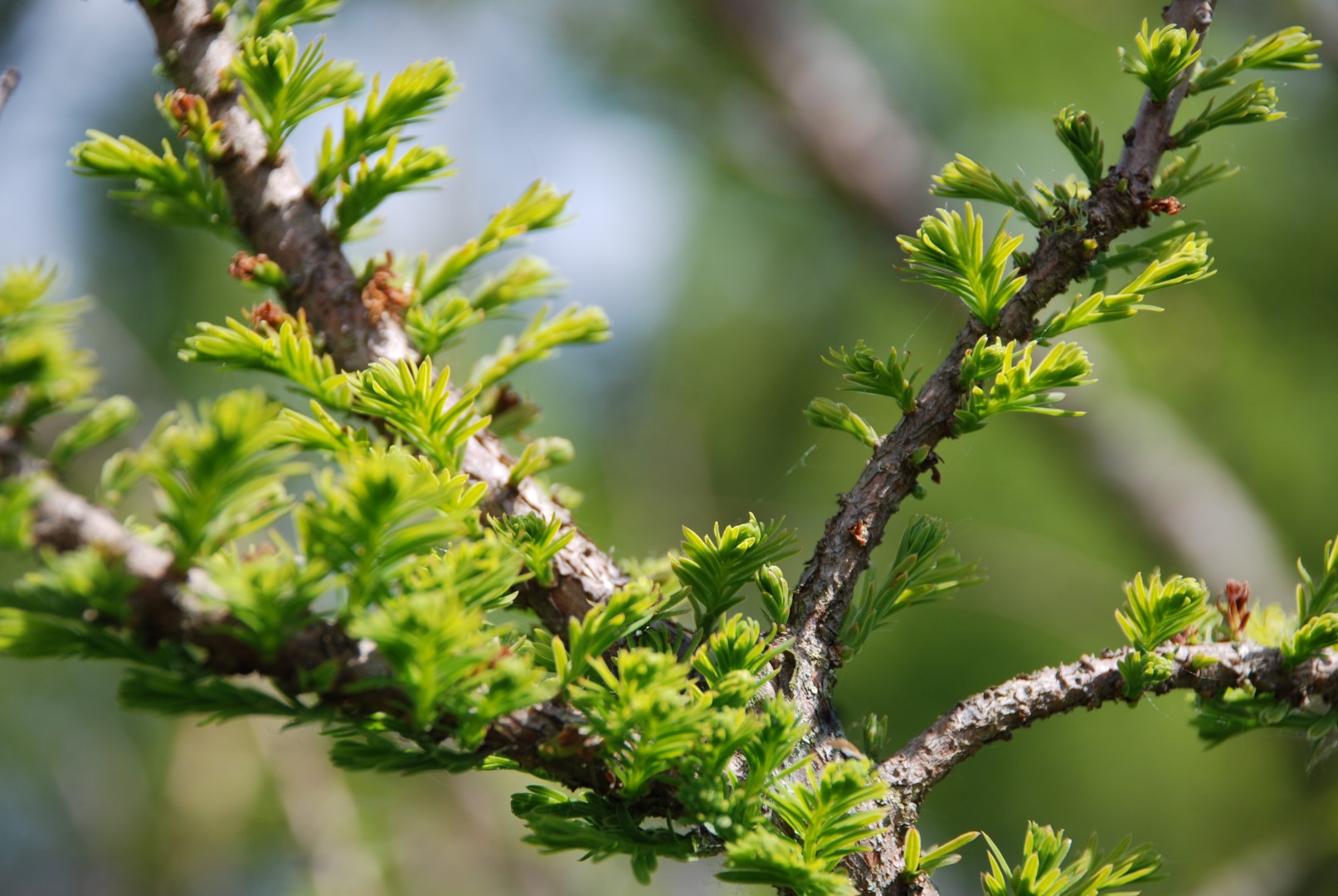 Taxodium distichum 'Pévé Minaret' blooms in march.