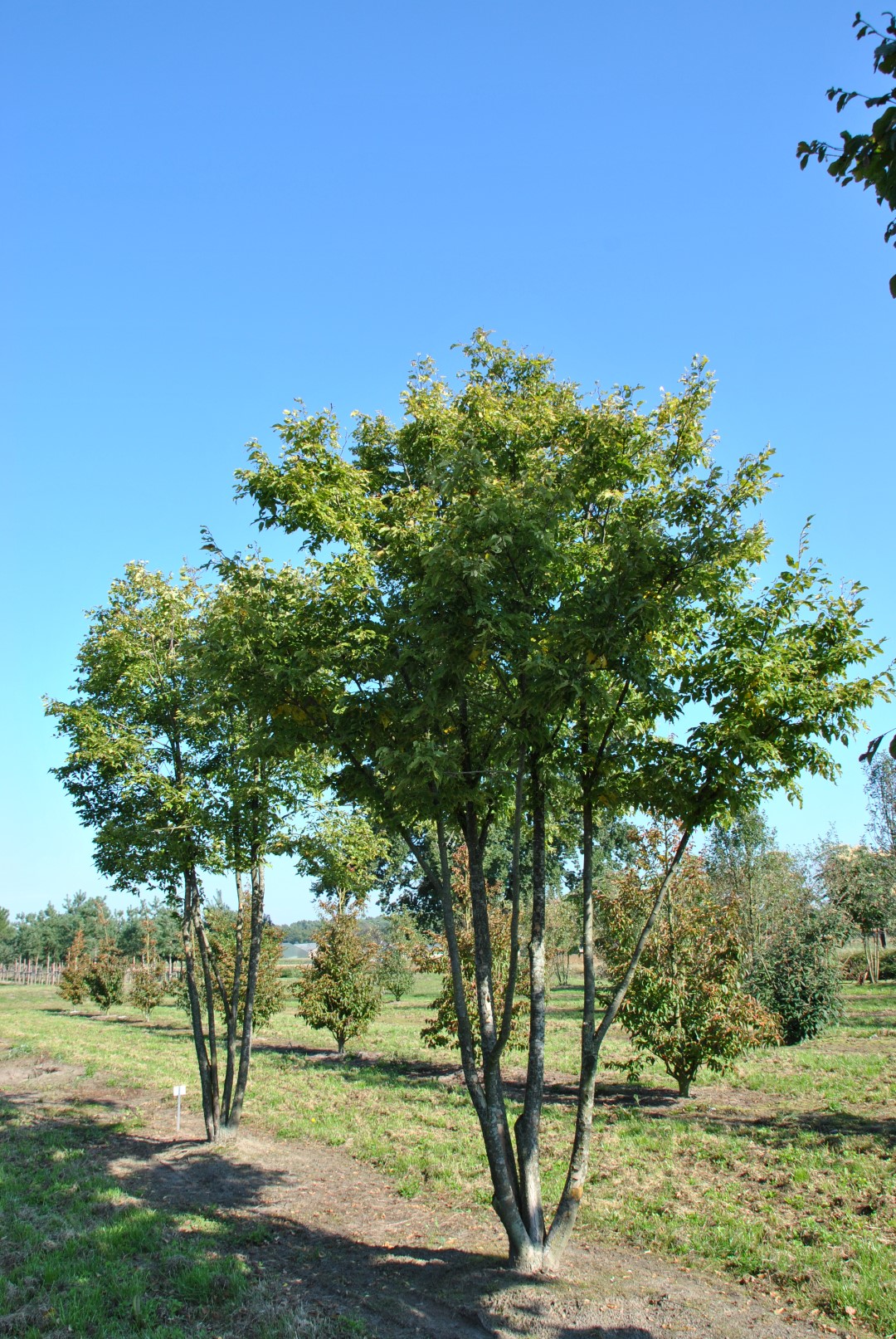 Grows from a broad shrub shape into a small tree with a broad, pyramidal crown. In culture about 5 m tall but grows to around 10 m in the wild. The young twigs have soft hairs. The hair disappears after the first season. The leaves are strikingly slender and small for the linden. They are elongated oval with a long pointed tip and 5 - 8 cm long and 3 to 5 cm wide. The top of the leaf is dark green, the underside is lighter. Both sides have soft hairs and the margin is serrated. In autumn the leaf turns dark yellow. In July, cream-coloured flowers stand together in corymbs of 8 - 15. They are followed by brown, hairy round fruits. A graceful linden with abundant inflorescence suitable for parks and as a solitary tree. If grafted on a standard, the tree can also be used on green borders.