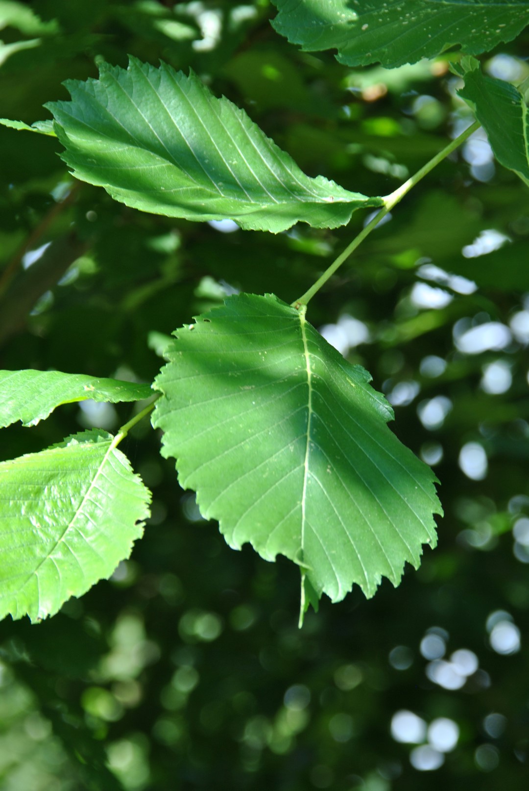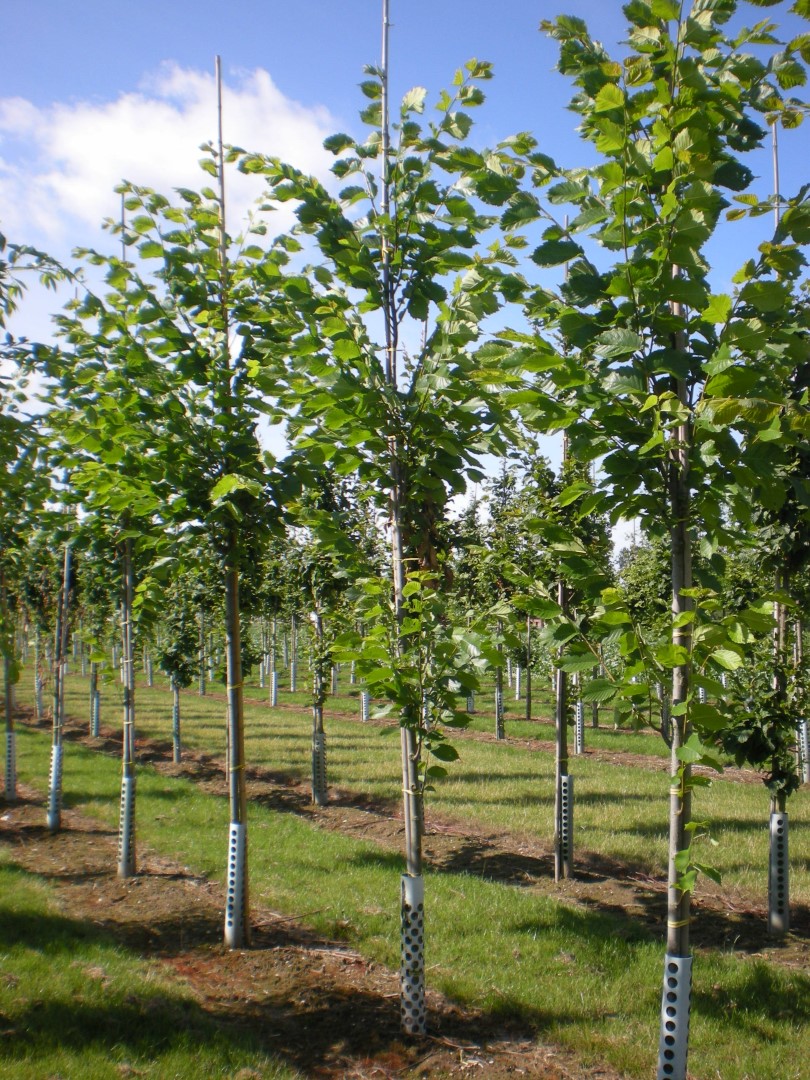 When young, this tree naturally grows fairly straight and narrowly upwards which means it needs little or no pruning. Later is grows into a large tree with a height of around 20 m and an oval to broad-oval crown. The light grey-brown bark is slightly grooved. The leaf is obovate, 5 - 15 cm long with a leathery structure. The autumn colour is golden-yellow to brown-yellow. The tree was selected in 1922 because of its lovely crown shape. It was only later that ‘Princeton’ was found to have reasonable to strong resistance to Dutch elm disease, at least in the USA. In England it turns out that this cultivar gets ill anyway. It is therefore recommended only to use ‘Princeton’ in areas where the threat of infection is low. Despite the fact that the crown can become somewhat ragged when older, its oval shape makes ‘Princeton’ suitable as an avenue and street tree nonetheless. Unusually hardy.