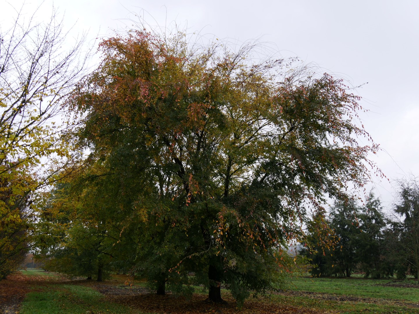 A graceful, medium-size tree with a dense round crown. The tree usually grows to 8 - 15 m but in exceptional cases it can reach 18 m tall. The young twigs are glossy brown and slightly hairy, but rapidly become hairless. The old bark is brown-grey and peels off in small plates revealing the orange bast. The leaves are fairly small and glossy dark green. In southern regions of origin, the tree is almost evergreen but in a temperate climate always deciduous. The foliage falls in late autumn and takes on hardly any or no autumn colours. The tree blossoms in September with clusters of inconspicuous green flowers, followed by winged seeds. Its resistance to Dutch elm disease makes it worth considering as a park and avenue tree. It has a great adaptability to various soil types, tolerates a lot of warmth and is wind resistant.