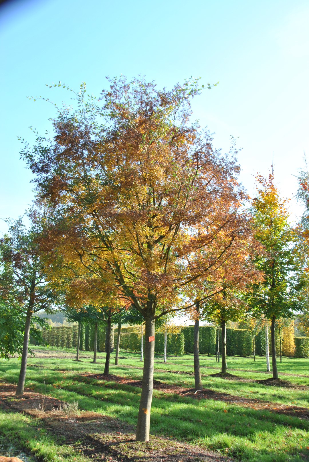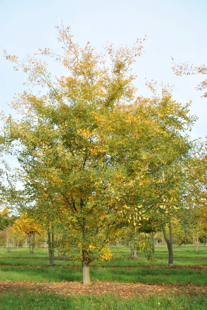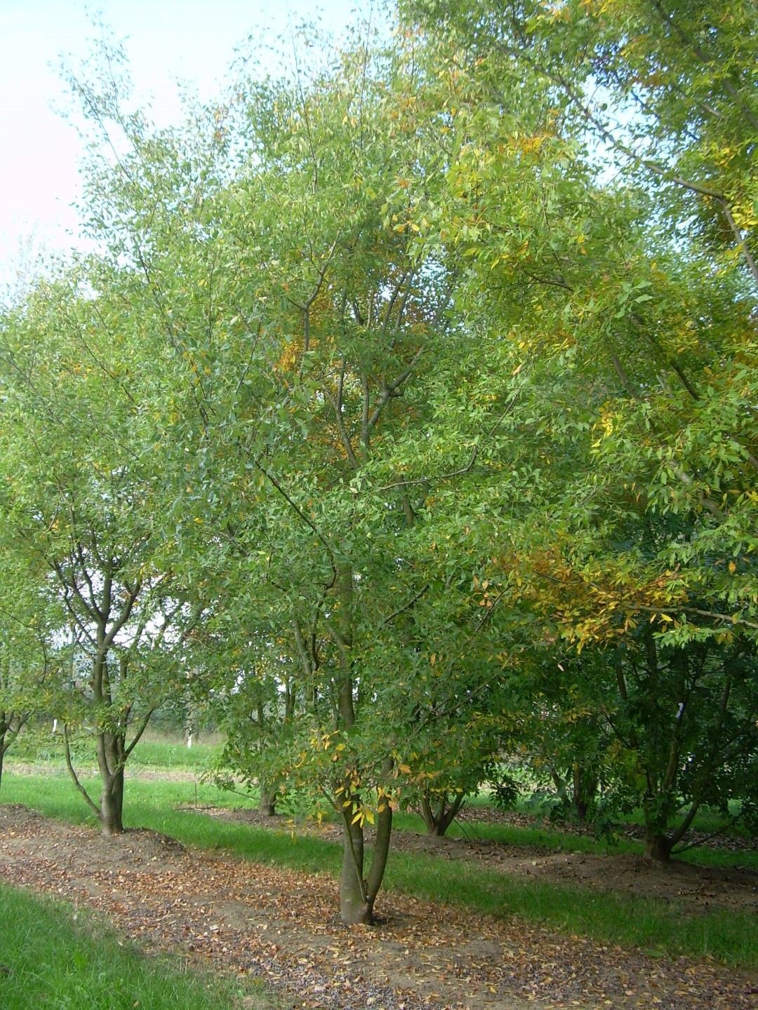 Medium-size tree that at first sight resembles Z. carpinifolia, but is significantly smaller. The wide vase-shaped crown grows to 6 - 12 m height and spread. The branching is less ascending but naturally starts quite low. The young twigs are quite thin, brown and slightly hairy. The mature bark is grey rarely exfoliates in small plates. The slightly crooked, ovate to elliptical leaf is dark green and has the same hair as Z. carpinifolia. The leaf margin, however is significantly more deeply serrated. The blossom, fruits and autumn colour are as the species. A medium-size park tree with a graceful crown shape that was originally described as a separate species but is now assumed to be a selection of Z. carpinifolia. Material gathered from the wild has never been kept which means this is not likely to be a wild species.