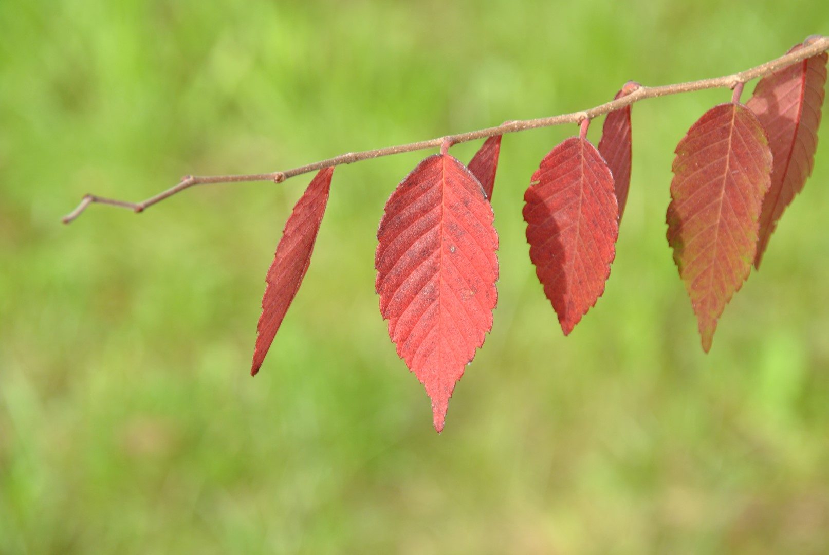 The leaves of Zelkova schneideriana turn red in autumn.