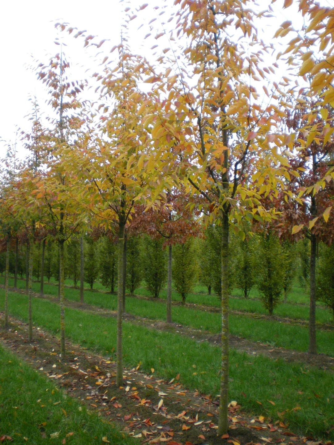 The leaves of Zelkova serrata GREEN VASE ('Flekova') turn yellow, orange, red in autumn.