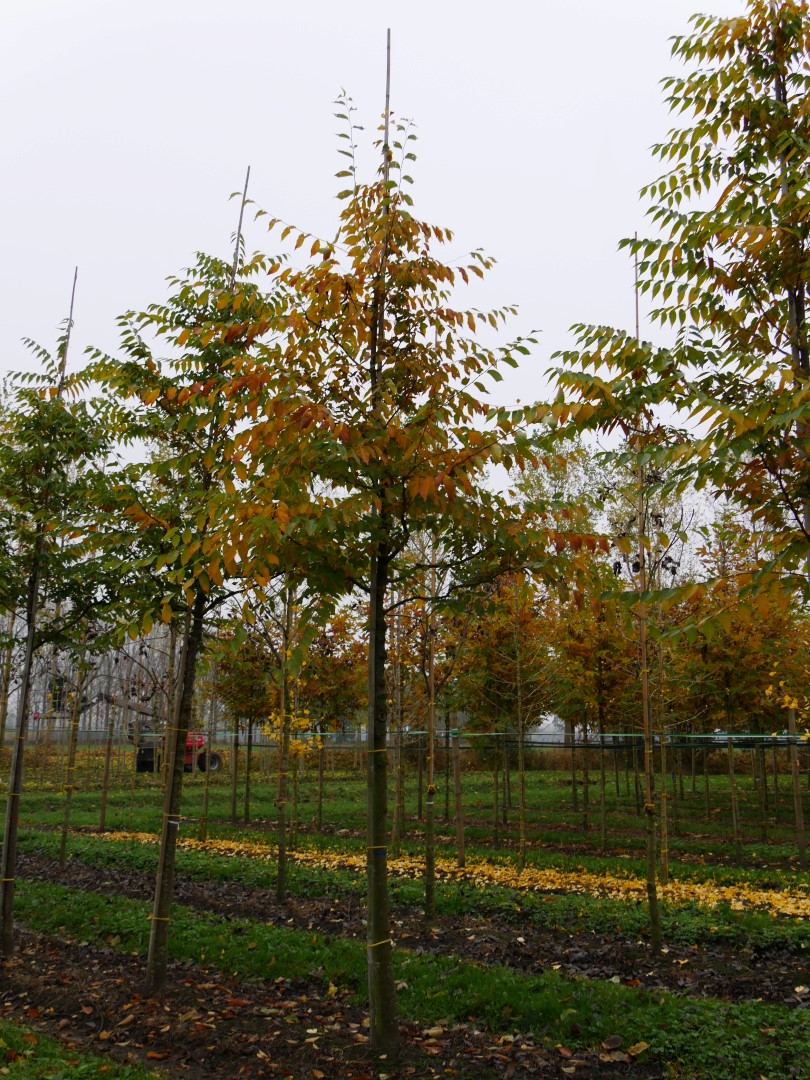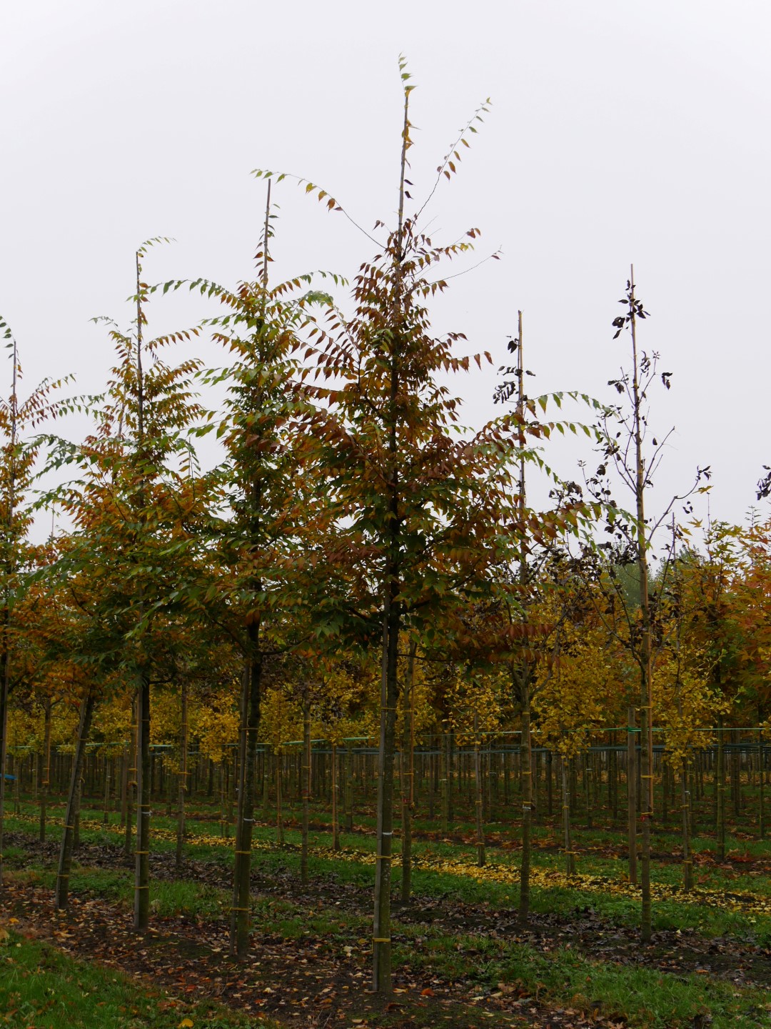 The leaves of Zelkova serrata 'Urban Ruby' turn yellow, orange, red in autumn.