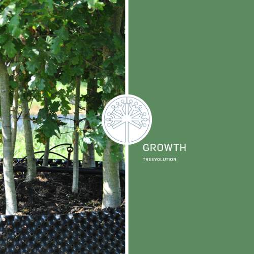WOODSIDE FOREST originated from a design wish of landscape architect Peter Lubbers. He was looking for a more natural, multi-stem look, a kind of ‘instant forest’. His request was in line with the trend towards more natural looking, native planting, and we decided to experiment and see what we could come up with. The development drew inspiration from thickets of species originating from Western Europe. In order to achieve the desired look, lots of young trees were planted close together. The roots of these trees will eventually form a single root ball and can be planted together as a natural thicket. The groups are cultivated in airpot in order to create a perfect, solid root ball to facilitate replanting.